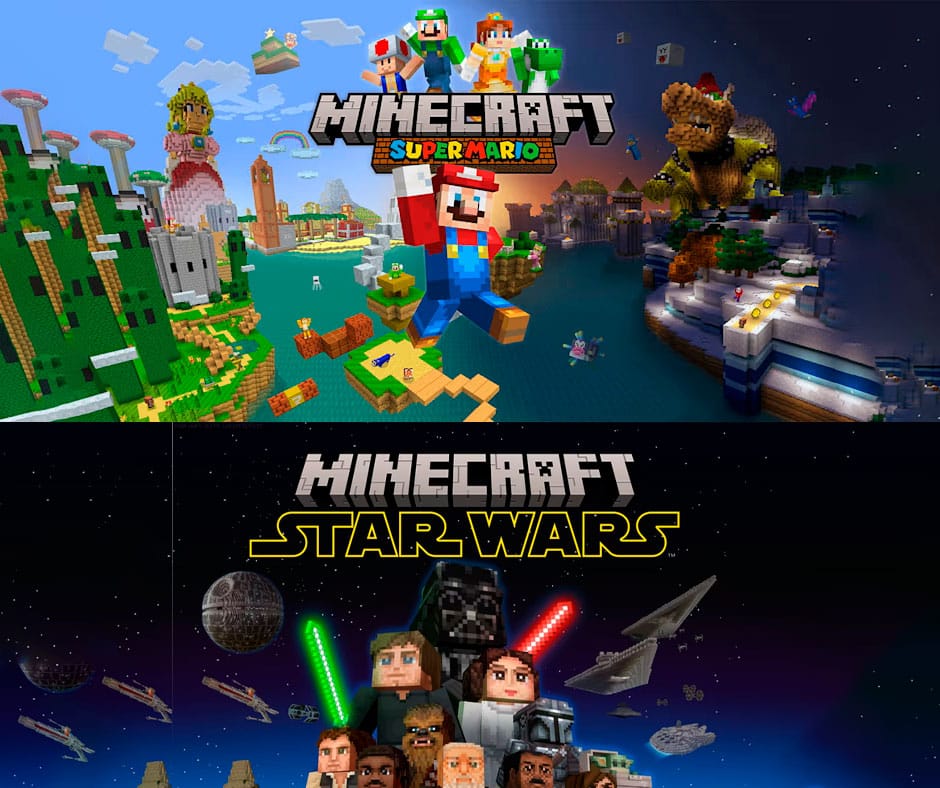 Sumérgete en universos pixelados donde la creatividad no tiene límites. Construye, explora y vive emocionantes aventuras inspiradas en los icónicos mundos de Nintendo y la galaxia de Star Wars dentro de Minecraft. ¡Que la construcción y la fuerza te acompañen!